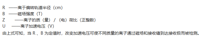 燈絲發射的電子在電離室內振蕩,與氣體分子及通過被檢件漏孔進入的氦氣碰撞,使其電離成正離子。這些離子在加速電場作用下進入磁場,受洛倫茲力作用偏轉形成圓弧形軌道。軌道半徑與磁場強度、離子質荷比及加速電壓有關。通過調整加速電壓,可使不同質量的離子通過磁場和接收縫到達接收極,從而實現檢測。